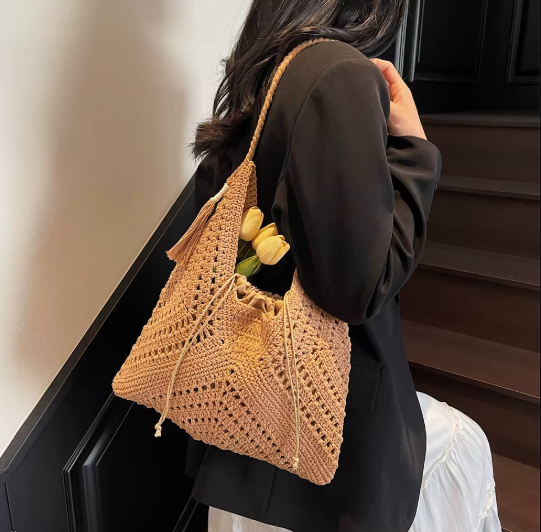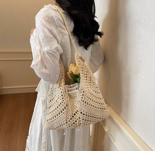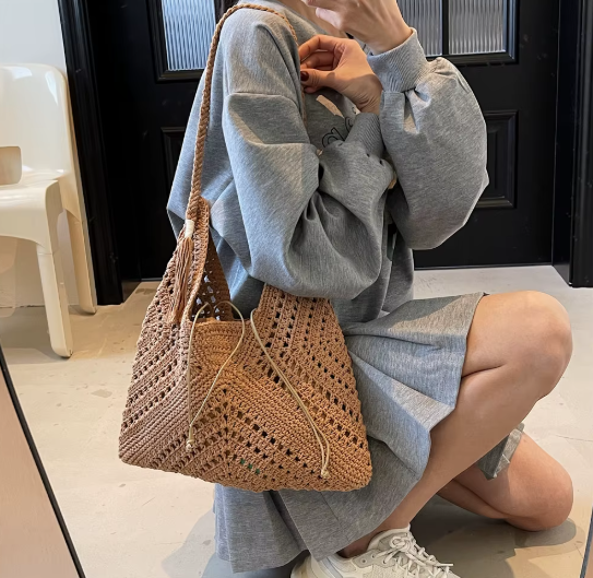 Effortlessly timeless, the Soléa Set blends artisan charm with conscious elegance. Handwoven in a natural raffia-style knit, this 2-in-1 shoulder bag is designed to accompany your summer escapes — from beachside mornings to city strolls.