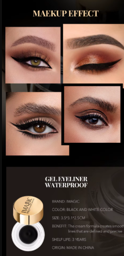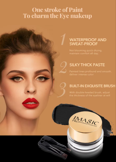 Achieve stunning, bold eyes with the IMAGIC 24-Hour Waterproof Gel Eyeliner. This high-quality eyeliner provides intense colour that lasts all day, perfect for a flawless look from morning to night. Its quick-drying formula ensures ease of use, while natural plant extracts moisturise and nourish the delicate skin around your eyes.